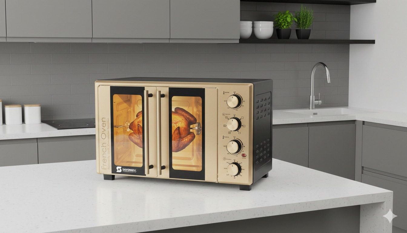 السعة: 60 لتر الاستطاعة:2000 واط باب مزدوج أنيق باب زجاجي مقاوِم للحرارة مروحة ذكية لتوزيع الحرارة بشكل متجانس إضاءة داخلية لمتابعة الطهي القياس ( 58*40*37) سم درجة الحرارة: مدى واسع (من ١٠٠ إلى ٢٥٠ درجة مئوية) عزل حراري فعال لاستهلاك كهرباء معقول. تحكم بالهترات سفلي او علوي منفرد او الاثنين معا